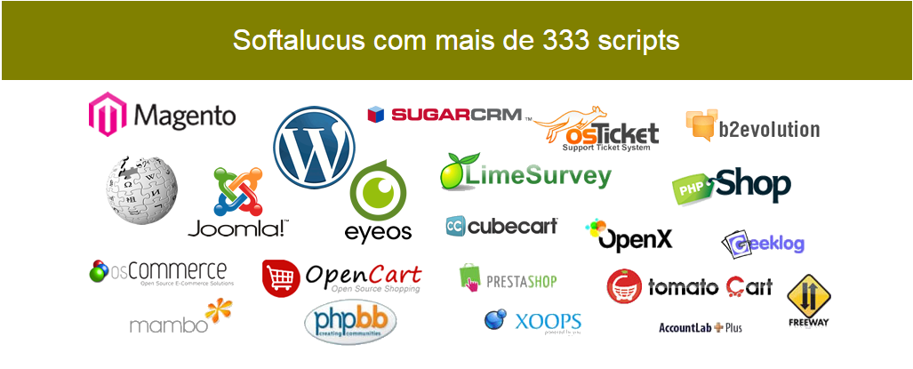 Cada cliente recebe um instalador Softaculous livre dentro de seu painel de controle de hospedagem, Esse instalador inclui 333 os scripts sucg como: Joomla, WordPress, phpBB, B2evolution, Concrete5, Drupal, PHP Nuke, Pligg, Cube ... e até mais!